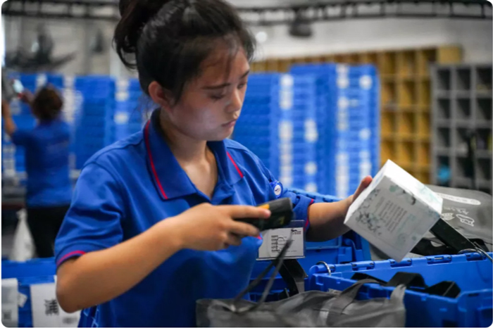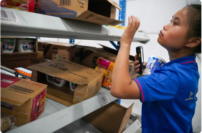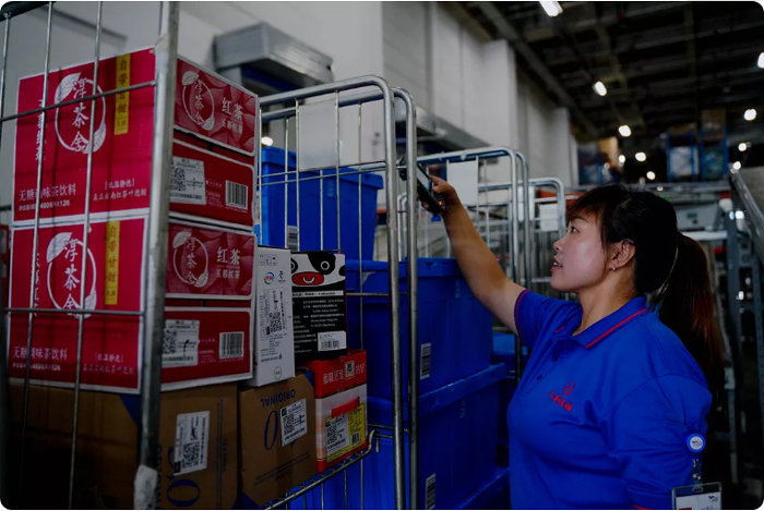时至深夜,拣货工作虽已接近尾声,但整箱拣货组仍在完成属于他们的工作,一刻不能懈怠。